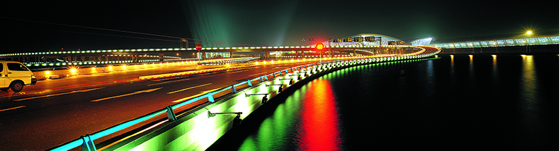 項(xiàng)目工程全長(zhǎng)約2.9km,高架雙向8車道。航站區(qū)立交橋?qū)⒑秸緲?、景觀水池、停車庫以及軌道交通車站相互交融在一起,立交總體設(shè)計(jì)方案科學(xué)合理,橋梁結(jié)構(gòu)結(jié)合環(huán)境美觀大方。