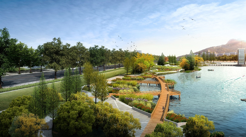 梅林濕地公園—長1.35公里,占地14.7萬㎡,新潭溪濕地公園—長1.6公里,占地18萬㎡。
