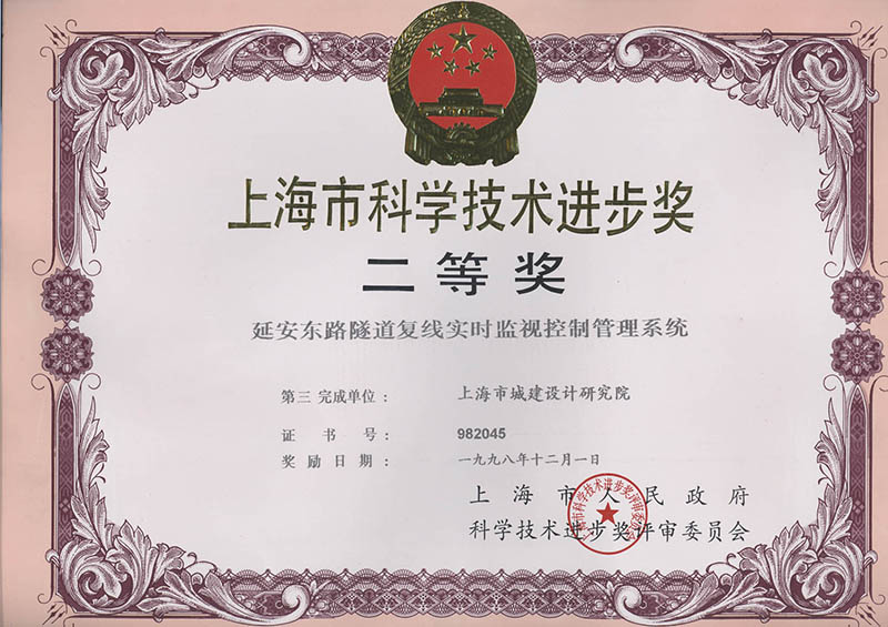 1998年度上海市科技進(jìn)步二等獎(jiǎng)