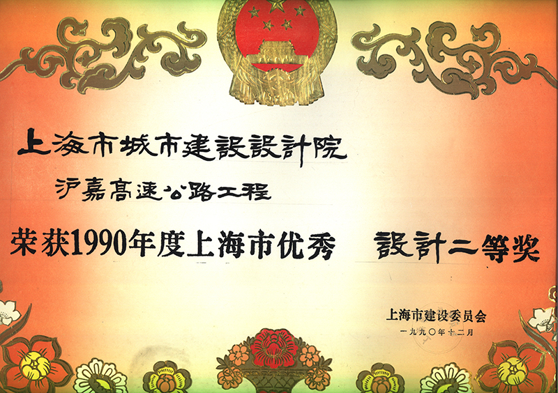 1990年度上海市優(yōu)秀工程設(shè)計(jì)二等獎(jiǎng)