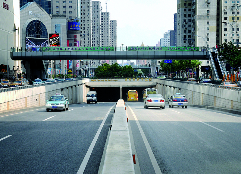 浦東南路-張揚(yáng)路下立交工程為城市主干道,雙向4車(chē)道。設(shè)計(jì)行車(chē)速度50km/h。地道全長(zhǎng)515m,為矩形結(jié)構(gòu),道路下立交。
