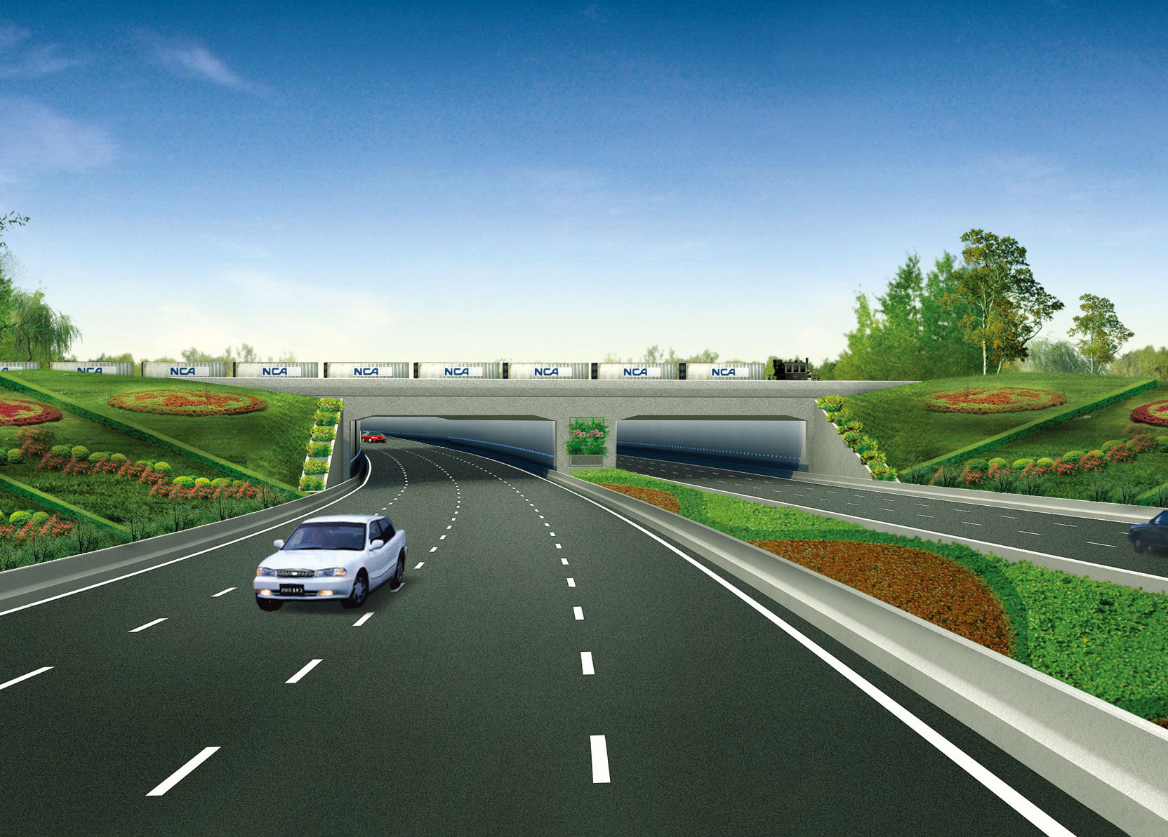 在長(zhǎng)距離下沉式道路、敞開段景觀坡面結(jié)構(gòu)設(shè)計(jì)等方面進(jìn)行了創(chuàng)新設(shè)計(jì)