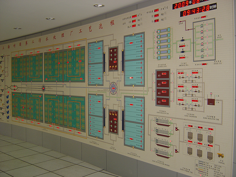 上海竹園第二污水廠設(shè)計(jì)處理能力為50萬噸/天,采用專利閉式雙泥齡A/O處理工藝,達(dá)到國家二級排放標(biāo)準(zhǔn)。供電系統(tǒng)包括1座35kV變電站、4座6kV變電站;6kV水泵采用變頻調(diào)速,6kV鼓風(fēng)機(jī)采用隨動(dòng)功率因數(shù)補(bǔ)償。自控系統(tǒng)采用精確曝氣控制技術(shù),通過污染物負(fù)荷在線監(jiān)測、污泥活性實(shí)時(shí)仿真、曝氣系統(tǒng)優(yōu)化控制等技術(shù)措施,節(jié)約運(yùn)行能耗8~10%。