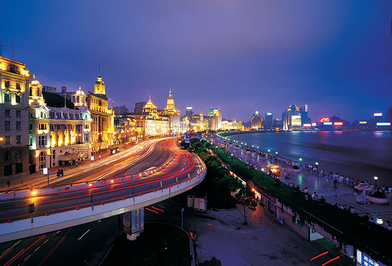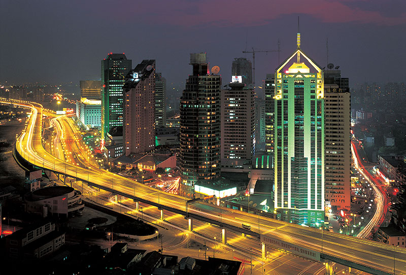 延安路高架中段全長5.56km,穿過上海市中心繁華地段。高架照明供電首次采用中壓傳輸系統(tǒng)和埋地式變壓器。特殊路段中央分隔帶采用臥式箱形照明燈具,高架兩側底邊內(nèi)鑲嵌藍色光帶照明。