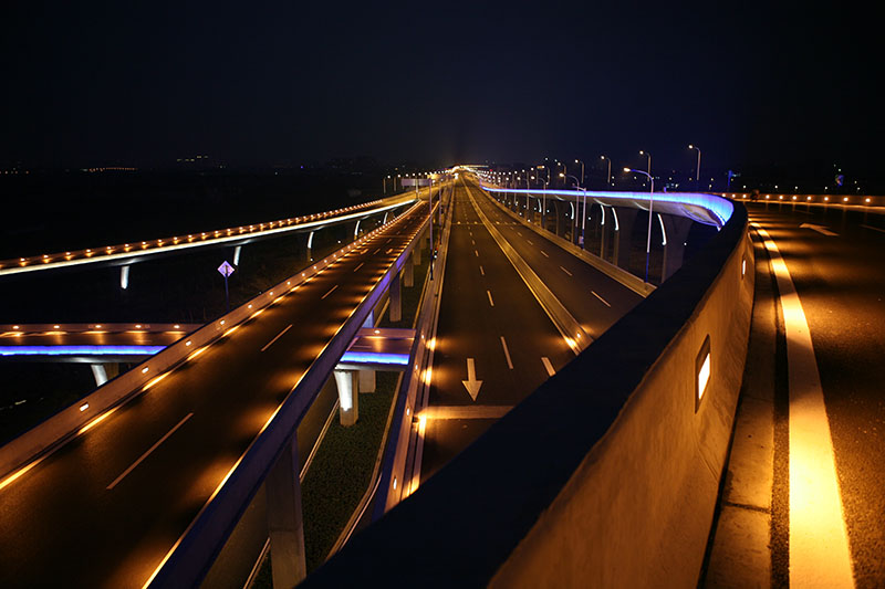 常州高架道路一期工程全長約29km,主線雙向6車道,設(shè)計車速80km/h。立交部分采用嵌入式道路照明,外側(cè)和底部設(shè)景觀照明,照明系統(tǒng)采用節(jié)能控制方案,可有效降低照明能耗。交通監(jiān)控系統(tǒng)包括監(jiān)控中心、信息采集、信息發(fā)布、匝道控制、電子警察、通信傳輸?shù)葍?nèi)容,以此為契機,建立了常州市智能交通系統(tǒng)的核心架構(gòu)。