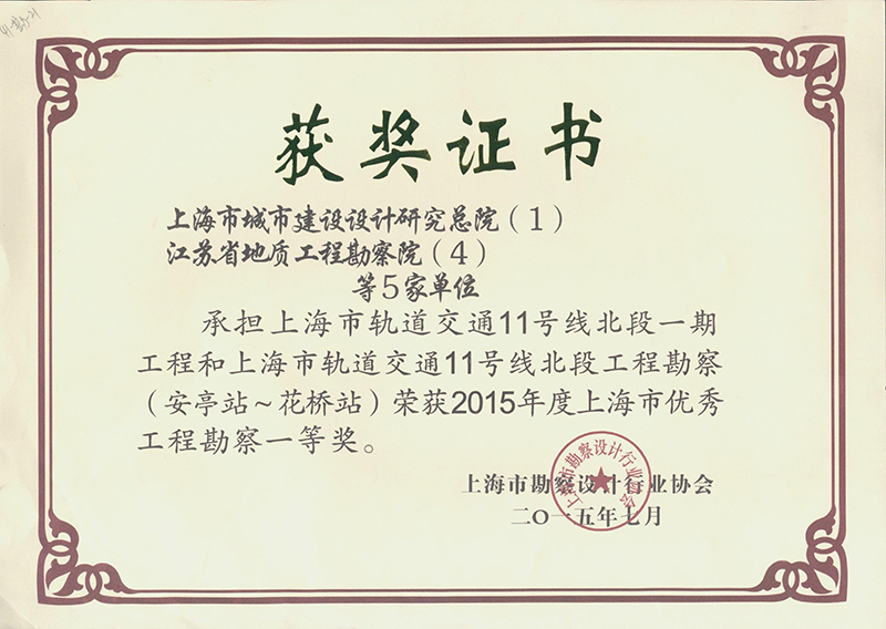 上海市優(yōu)秀工程勘察項(xiàng)目一等獎