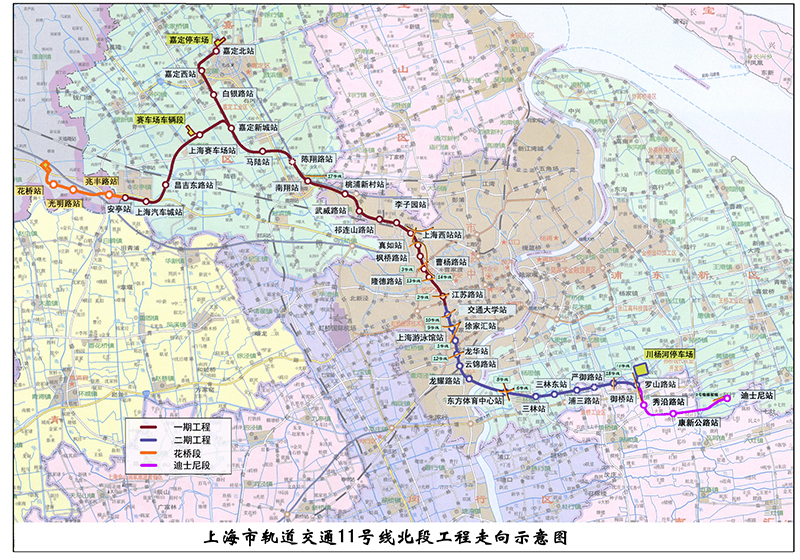 11號線北段為國內(nèi)首條跨省軌道交通,一期工程和花橋段總長50.5 km,主線長31.6km,支線長12.9km,花橋段長6.0km;主線途經(jīng)嘉定區(qū)、普陀區(qū)、長寧區(qū);支線從嘉定新城站到安亭;并由安亭延伸到昆山市花橋;共24站23區(qū)間。全線由地下車站、地下線區(qū)間、地面線、高架車站、高架區(qū)間等多種形式組成,同時包括城北路停車場(為綜合開發(fā),包含23層高層和5~7層上蓋建筑)、賽車場車輛段。本工程具有線路長、地質(zhì)條件復(fù)雜(涉及2個地貌單元、且跨省)、建(構(gòu))筑類型繁多、地鐵運(yùn)營速度快特點(diǎn)。