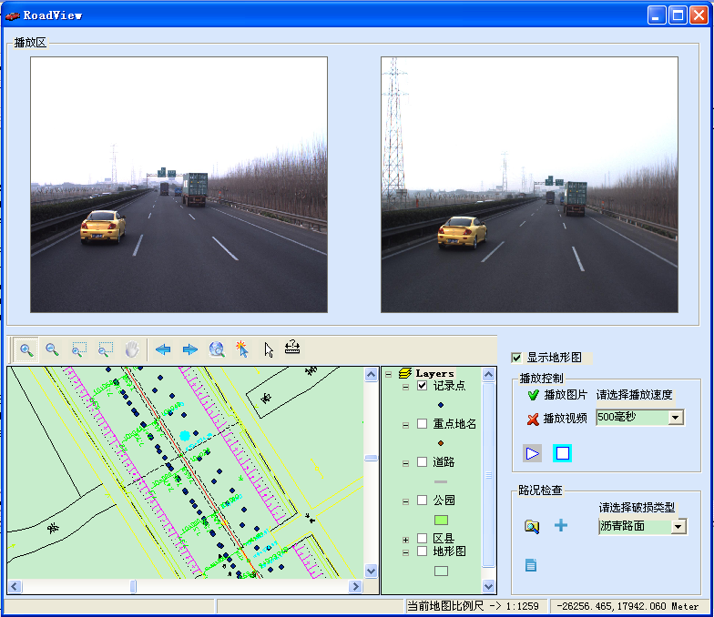 通過對(duì)移動(dòng)道路測量系統(tǒng)(MMS)的應(yīng)用和開發(fā),為城市道路建立了可視化的圖庫環(huán)境,獲道路路況所需的各種數(shù)據(jù)和信息,實(shí)現(xiàn)了路況調(diào)查自動(dòng)化。本成果實(shí)現(xiàn)了以下功能:在道路影像圖上進(jìn)行三維坐標(biāo)及距離的量測;生成符合《公路技術(shù)狀況評(píng)定標(biāo)準(zhǔn)》的路況調(diào)查報(bào)表;本成果在嘉瀏高速公路大修工程、A9公路入城段進(jìn)了應(yīng)用,作業(yè)效率提高了50%。