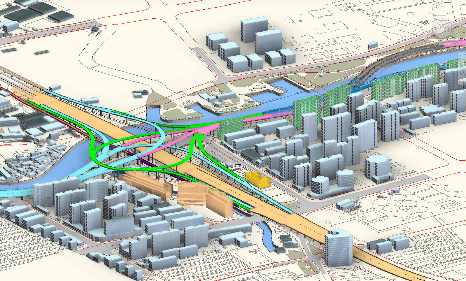 該工程包括大連路、江浦路、黃興路、隆昌路四個(gè)立交范圍內(nèi)立交、道路及排水,以及全線瀝青混凝土路面攤鋪、附屬工程及管線搬遷、二類費(fèi)用等。建安工程費(fèi)52.95億元。