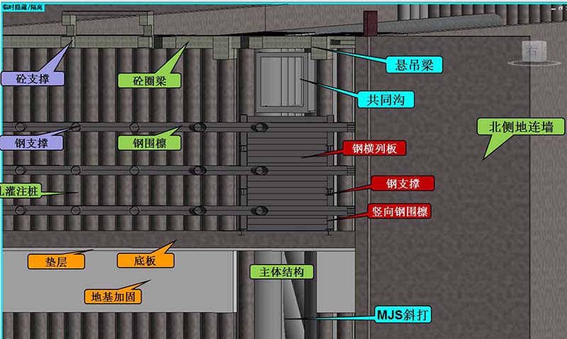 上海世博會(huì)B02、B03地塊地下空間工程包括:街坊內(nèi)各產(chǎn)權(quán)地塊下的地下空間工程,規(guī)劃一路、規(guī)劃二路道路及公共綠地地下空間工程兩部分,總建筑面積44.57萬平方米,是目前上海最大的在建地下空間開發(fā)工程。工程前期主要側(cè)重于BIM方案設(shè)計(jì),三維建模,匯報(bào)十余次后設(shè)計(jì)出合理的方案;逐步通過精細(xì)化建模,反映出工程與周邊構(gòu)筑物的空間關(guān)系,減少數(shù)十處碰撞以及圍護(hù)不封閉問題;通過施工模擬,解決工期緊張問題,節(jié)省工程造價(jià)。