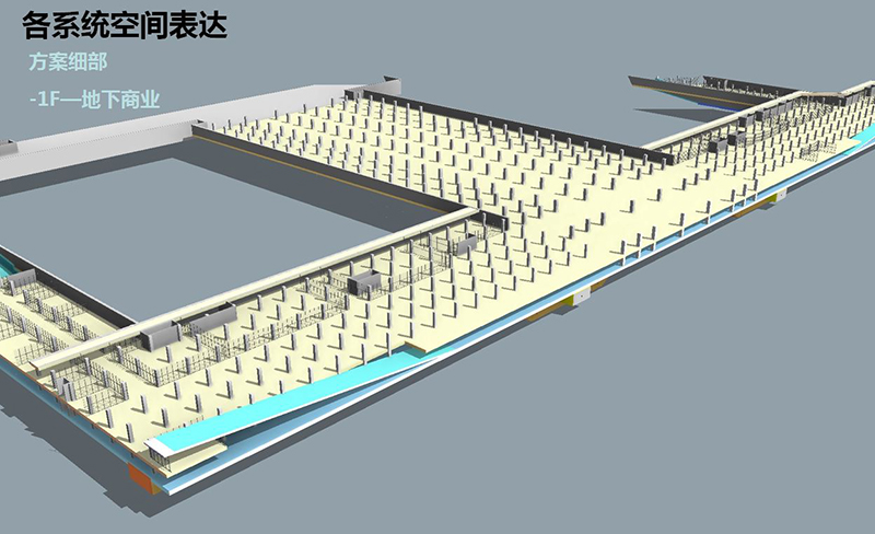 珠海橫琴口岸地下公共工程位于珠海橫琴口岸3條市政道路地下,占地5.2公頃,建筑面積10.2萬(wàn)平米。本次項(xiàng)目是利用BIM技術(shù)對(duì)復(fù)雜空間規(guī)劃設(shè)計(jì)的一次積極探索。首先利用采用Revit建立三維草模,推敲方案,對(duì)地下公共工程與城際車站接口問(wèn)題,綜合管廊與進(jìn)出線支管廊關(guān)系,出入口與地面關(guān)系進(jìn)行檢查、調(diào)整,通過(guò)多專業(yè)協(xié)同設(shè)計(jì), 完善了人行連通、車行連通、綜合管廊、地下防災(zāi)、商業(yè)服務(wù)、地鐵交通等幾大系統(tǒng)的組織與布局,并在Revit模型基礎(chǔ)上的進(jìn)行優(yōu)化、細(xì)化設(shè)計(jì),最后利用Vissim交通仿真模擬分析,優(yōu)化車行交通組織、進(jìn)出口閘機(jī)布設(shè)等。