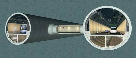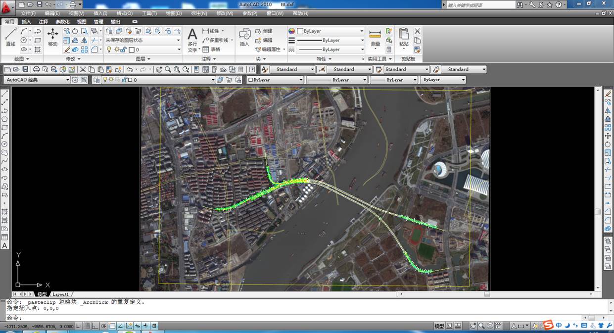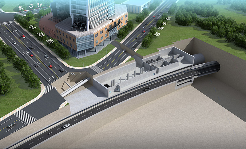 龍水南路越江隧道連接浦東前灘與徐匯濱江,采用雙向4車道規(guī)模,南北雙線長約2km。浦西隧道主線出入口在龍水南路上采用錯位布置的形式,并設(shè)置規(guī)劃六路出口匝道;浦東隧道主線出入口分別設(shè)置在高青西路和海陽西路上。越江段采用外徑11.36m的雙管單層盾構(gòu)。項(xiàng)目處于工可設(shè)計(jì)階段。借助BIM技術(shù)輔助設(shè)計(jì),應(yīng)用GoogleEarth地形準(zhǔn)確導(dǎo)入AutoCAD中。通過CAD的二次開發(fā),自動獲得盾構(gòu)段管片錯縫拼裝三維模型。