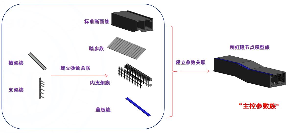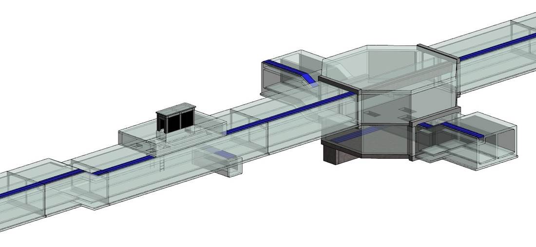 臨西十一路綜合管廊總長度11.6公里,采用雙倉斷面,標(biāo)準(zhǔn)段外包尺寸為3.7mx6.25m,管廊納入管線包括電力、通信、給水、燃?xì)狻1卷椖坷脜?shù)化族實現(xiàn)管廊快速化建模,尤其在管廊設(shè)計日益標(biāo)準(zhǔn)化的背景下,參數(shù)化設(shè)計具有良好實用性;由于模型實現(xiàn)參數(shù)化,提高了模型的準(zhǔn)確性和可控性;BIM建模過程中發(fā)現(xiàn)綜合管廊開洞位置,管線布置存在碰撞、沖突的地方,隨時調(diào)整相關(guān)參數(shù)即可完成單個和批量修改;通過BIM模型建立,檢查整體方案的可行性,精確統(tǒng)計工程量等。