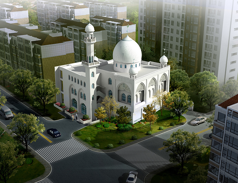 江灣清真寺工程為原楊浦區(qū)景星路清真寺移地重建項(xiàng)目。原址坐落在危棚簡屋的老街坊內(nèi),結(jié)構(gòu)簡陋,周邊環(huán)境差,四周都是居民住宅。為了改善穆斯林開展正常宗教活動(dòng),避免對周邊居民的影響而產(chǎn)生的矛盾,由楊浦區(qū)委、區(qū)政府在市光路、政府路交匯處劃撥土地1173m2,作遷建江灣清真寺工程用地。