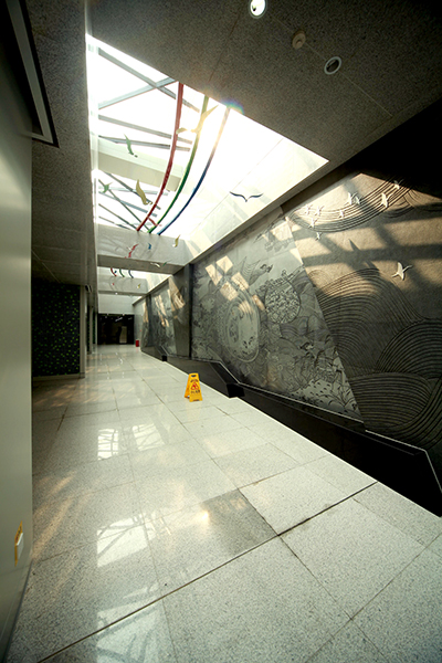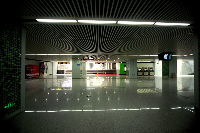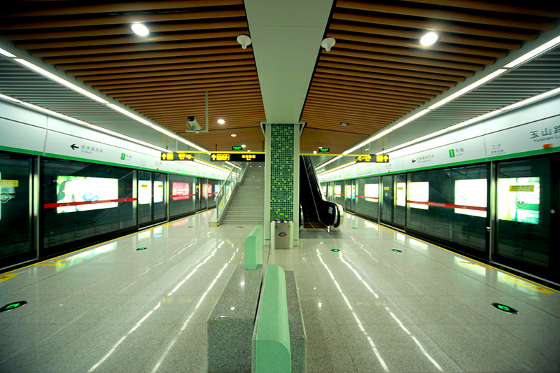 蘇州市軌道交通一號線工程玉山路站,位于長江路西側,沿長江路南北向布置于玉山公園綠地下,為地下二層10m寬島式站臺車站??傞L178.6m,寬19.3m,設4座出入口,總建筑面積為8418m2。于2012年6月投入運營。本站設置邊庭,將自然光線引入地下車站,在蘇州尚屬首次。