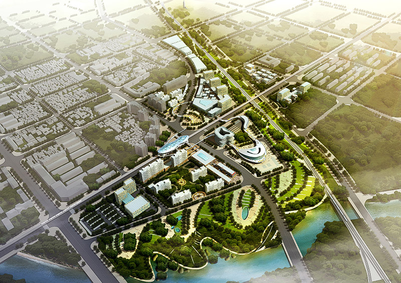 南側(cè)則蜿蜒著風(fēng)光秀美的刺猬河。軌道交通和鐵路象征著高速發(fā)展的力量;水系意味著地塊的歷史性與文脈,多種因素在這塊土地上并行, 刻畫出了層次豐富的設(shè)計(jì)背景。