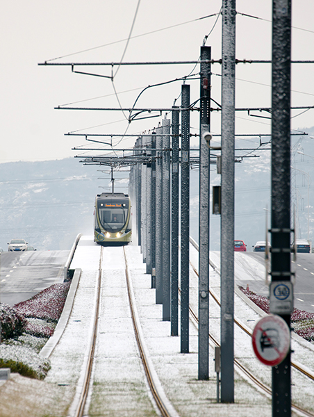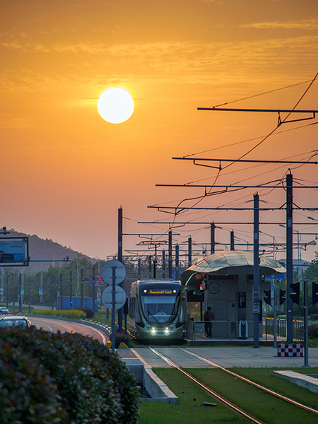 首創(chuàng)采輕型有軌電車接觸網(wǎng)設(shè)計,優(yōu)化接觸網(wǎng)的立柱、懸掛等設(shè)計,加強項目與環(huán)境的融合,有效降低工程投資。