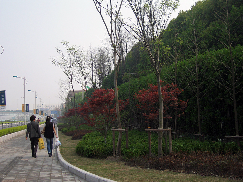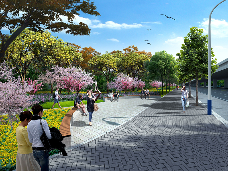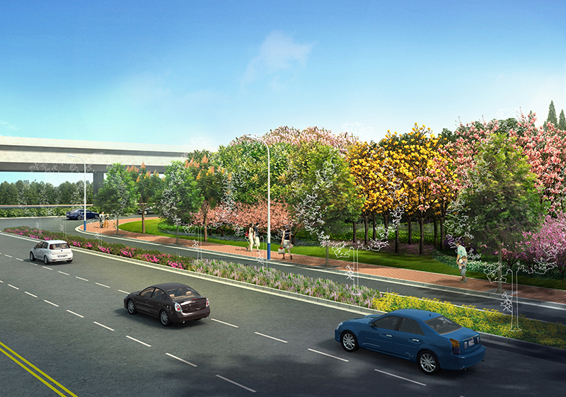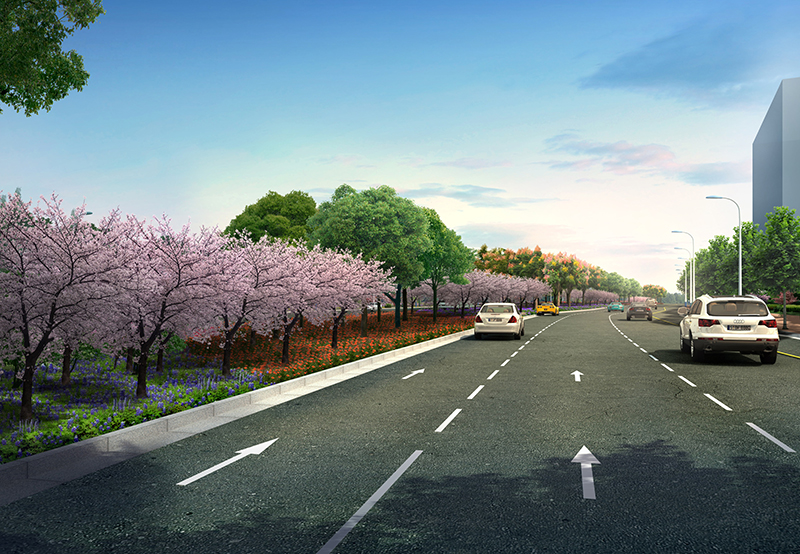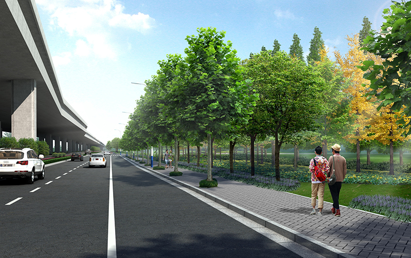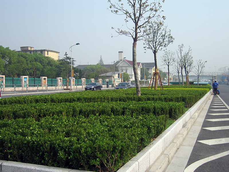 本項(xiàng)目包含長(zhǎng)約23公里的中環(huán)線(浦西段)萬(wàn)榮路以西-上中路隧道綠化工程,和長(zhǎng)約9.5公里的(浦東段)市政附屬綠化及兩側(cè)綠帶。地面道路綠化布置充分考慮車輛在行駛中產(chǎn)生的景觀方向性,以斜向種植的手法,增加道路觀賞面景觀的豐富性。高架橋蔭下摒棄常用的綠籬形式,選擇耐蔭植物以自然團(tuán)狀的形式,達(dá)到植物品種的多樣性。沿線行道樹的選擇則在詳細(xì)分析道路走向和兩側(cè)建筑的環(huán)境狀況后,分段選擇適合各區(qū)立地條件的植物品種。