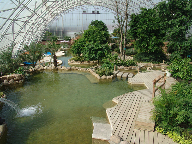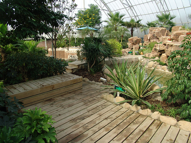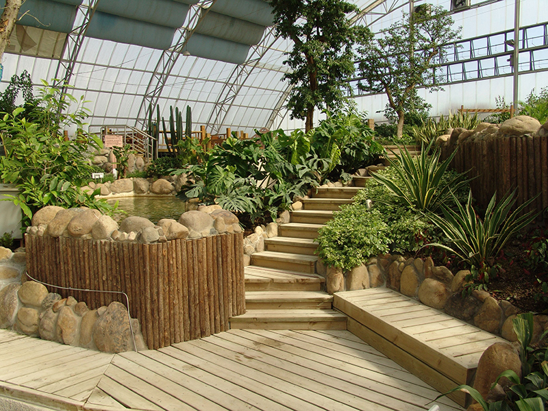 以挖湖堆山的造園手法在溫室大棚中模擬熱帶雨林自然環(huán)境